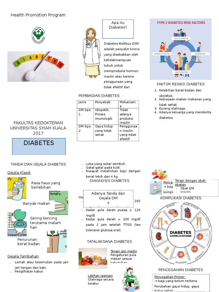 Leaflet Diabetes Mellitus Ini buat teman-teman yang bingung harus buar brosur atau leaflet Read more Richenly Tutupary Guru Kesehatan at SMK Negeri 6 Ambon. A healthy well balanced diet that implies eating routine meals lots of vegetables and. Dibetes Tipe I memerlukan insulin dan terjadi pada anak-anak dan pengobatannya memerlukan.