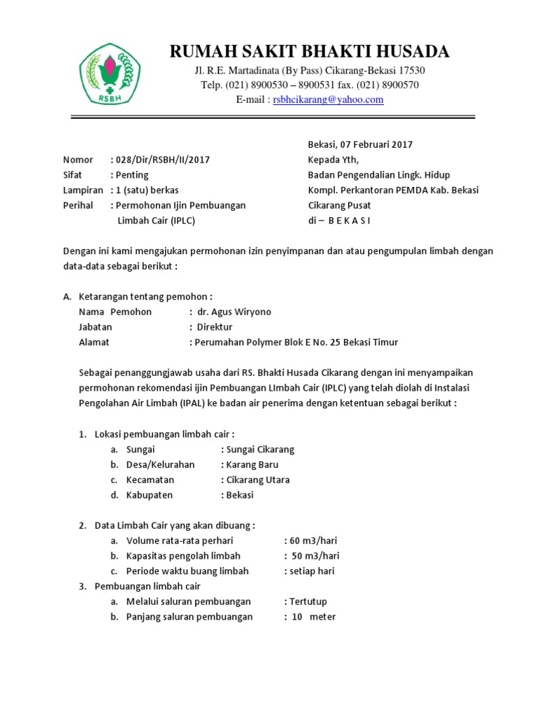 Contoh surat izin ipal. Fotokopi surat izin pengelolaan limbah cair lama khusus untuk perpanjangan. Dengan hormat Yang bertanda tangan di bawah ini.